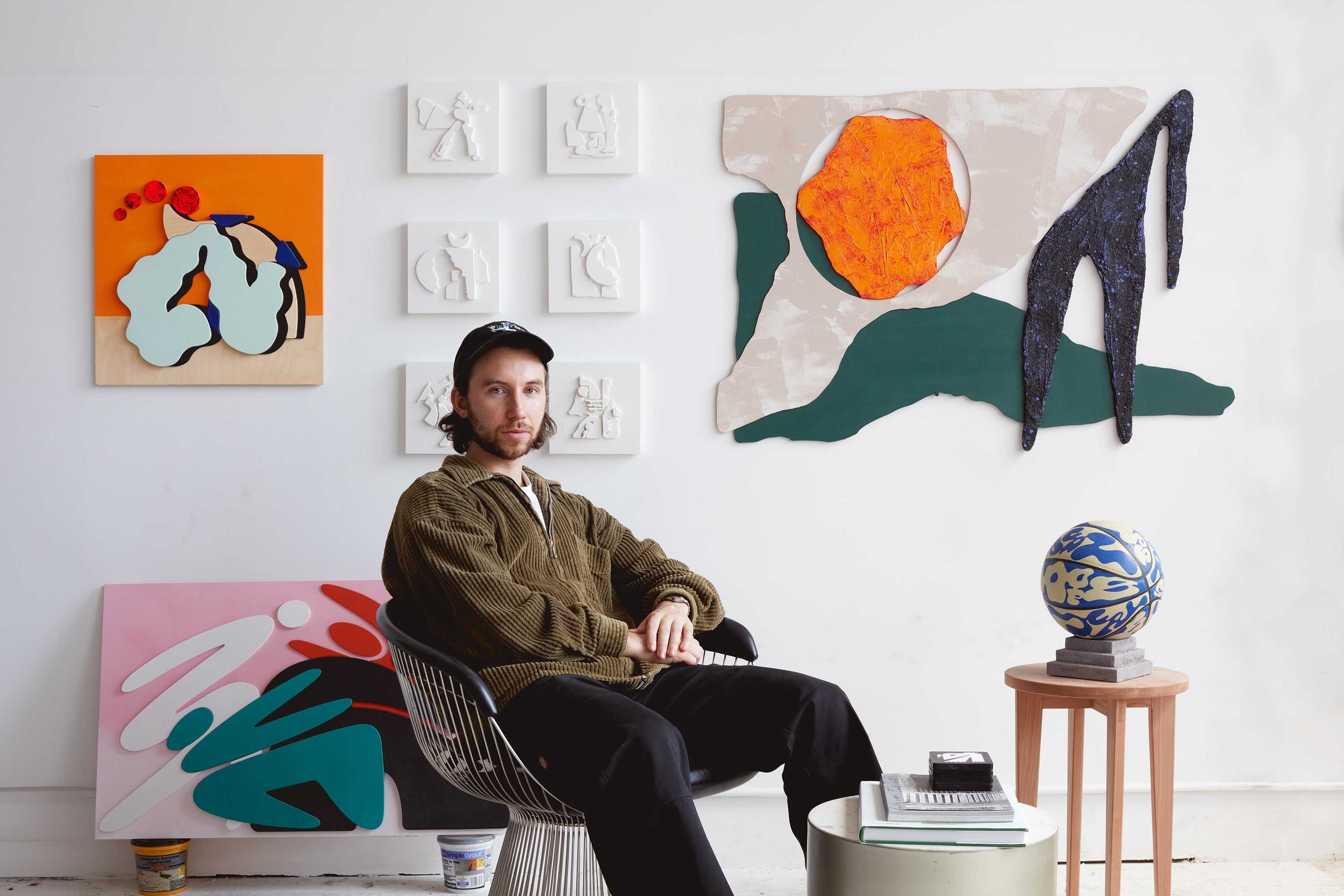 Common visual themes across the work include abstracting the movement of the human form, material and textural contrasts, and surreal objects and characters. He blends inspiration from his passions in music, sport, and fashion, as well as the vibrancy and chaos of life in New York City.